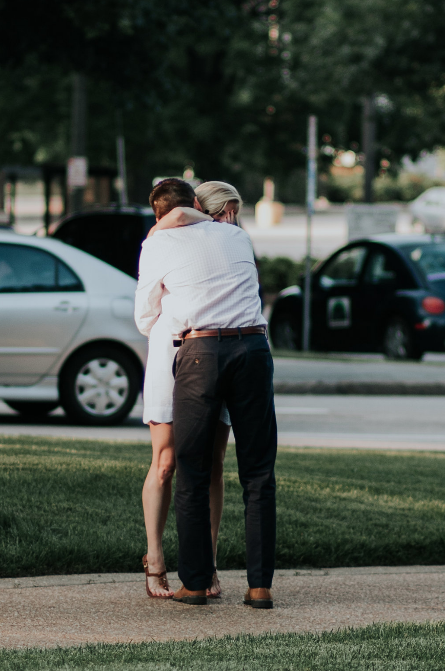 We stood guard out-front of the Capital building in Raleigh, waited until exactly 7pm, and watched the happy couple walk (exactly as planned) from the designated parking lot and right into location. Sure enough, after some sweet words that were out of ear-shot, Patrick dropped to his knee and popped the question. She had no idea and her reaction was awe-some.